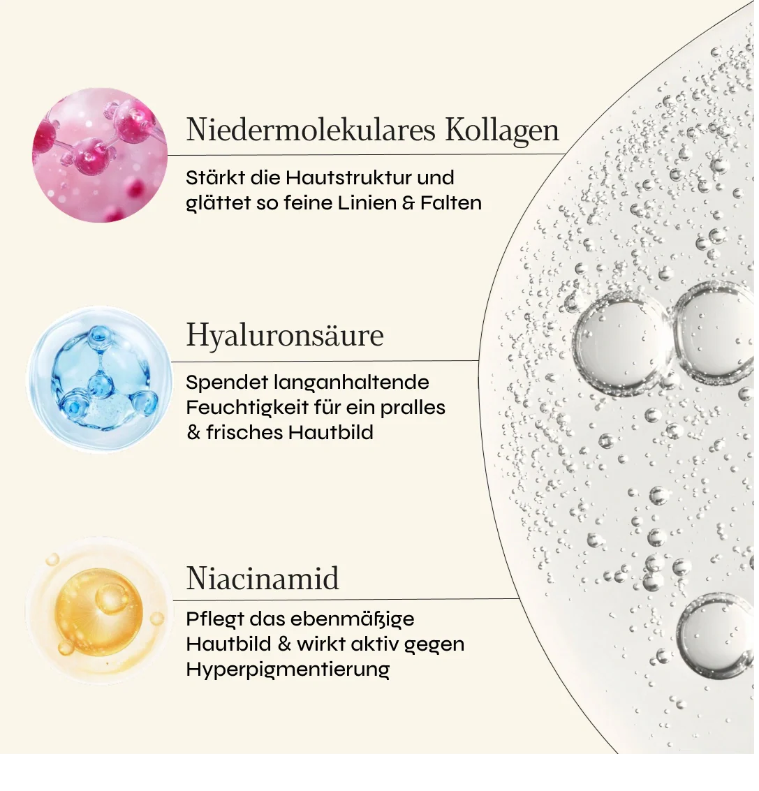 Die Packung enthält 8 einzelne Masken, die sich unkompliziert auflegen lassen. Schon während der Anwendung merkt man, wie die Haut richtig viel Feuchtigkeit aufnimmt. Nach dem Abnehmen fühlt sich die Haut angenehm weich an und leicht straffer – ein kurzfristiger Frischekick und nach der Anwendung scheinen bei mir feine Linien ein wenig weniger sichtbar. Aber keine dauerhafte Verjüngung.Mir gefällt besonders, dass die Maske nicht stark parfümiert ist und sich hochwertig anfühlt. Für Tage, an denen die Haut etwas extra Pflege braucht oder man sich einfach verwöhnen möchte, ist sie ideal. Ich nutze sie gerne zwischendurch und finde, sie erfüllt genau das, was sie verspricht: intensive Feuchtigkeit und ein angenehmes Hautgefühl.
